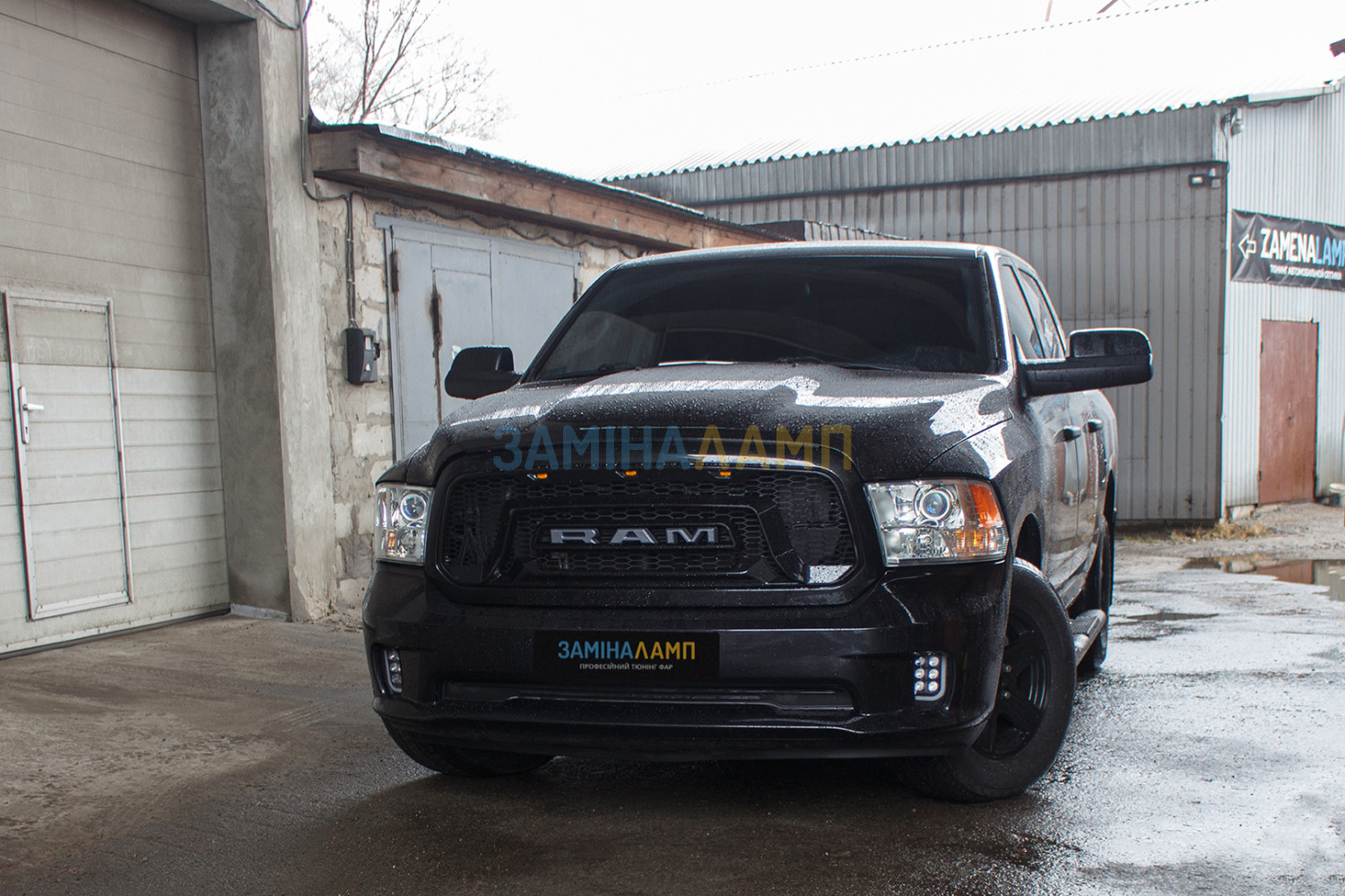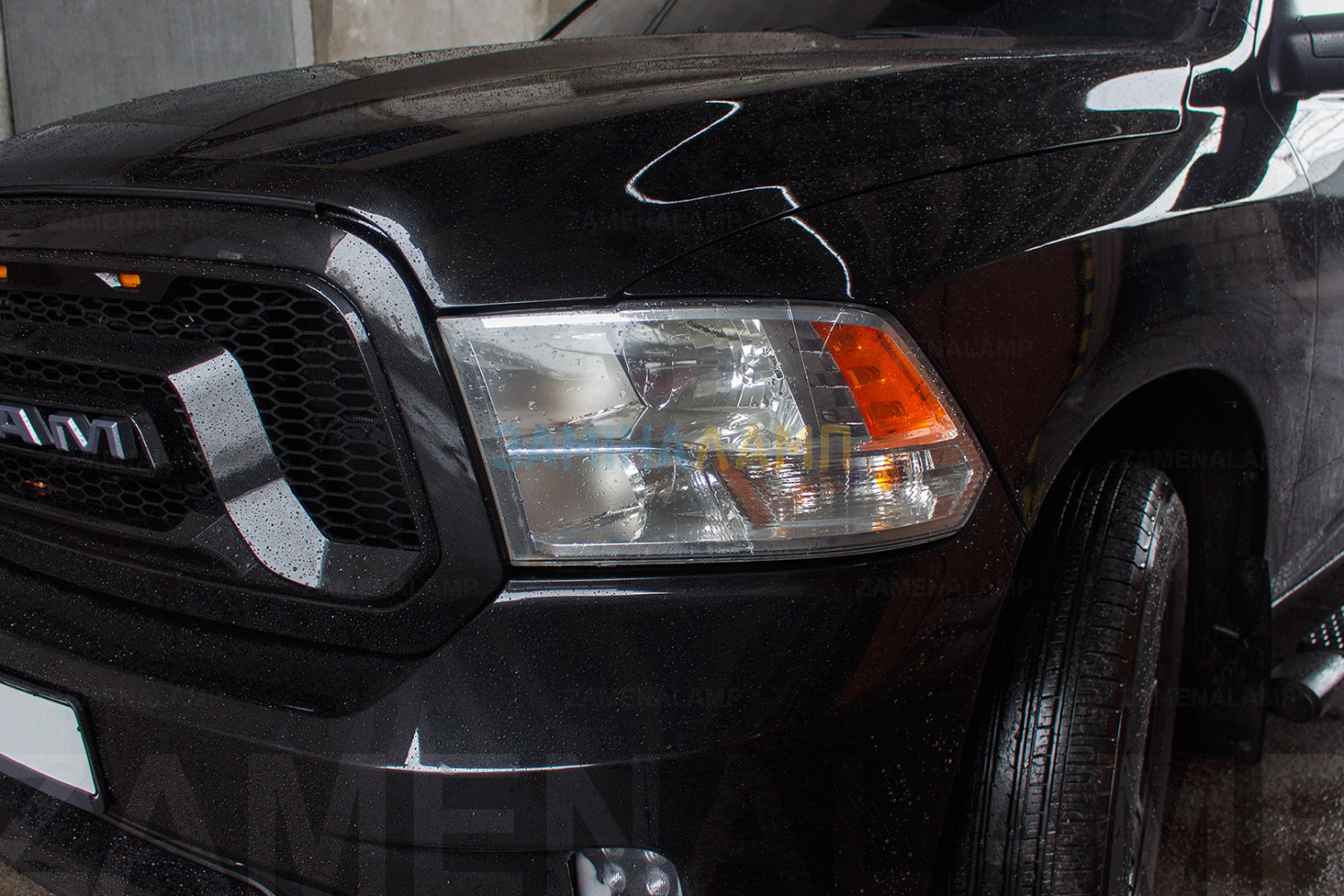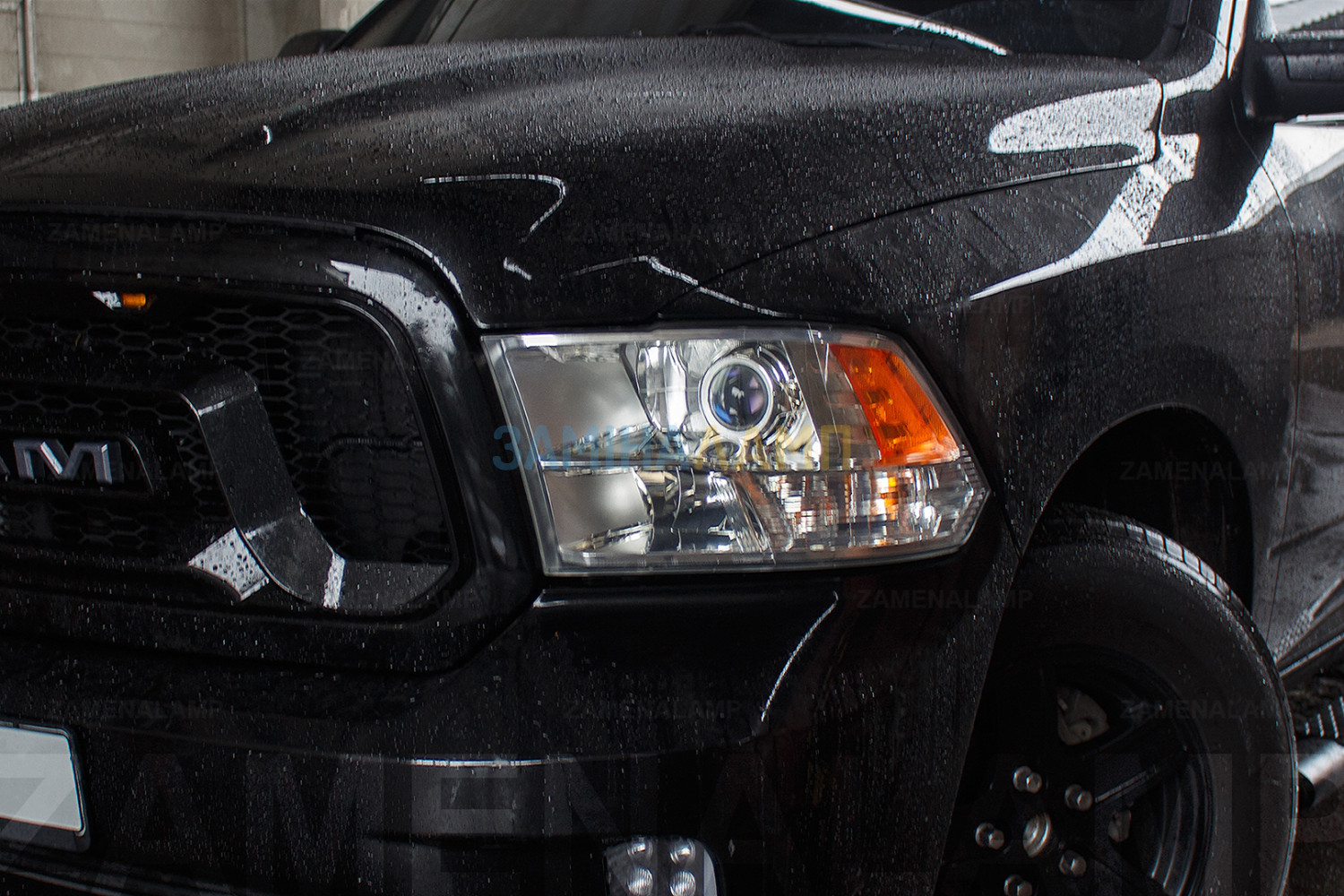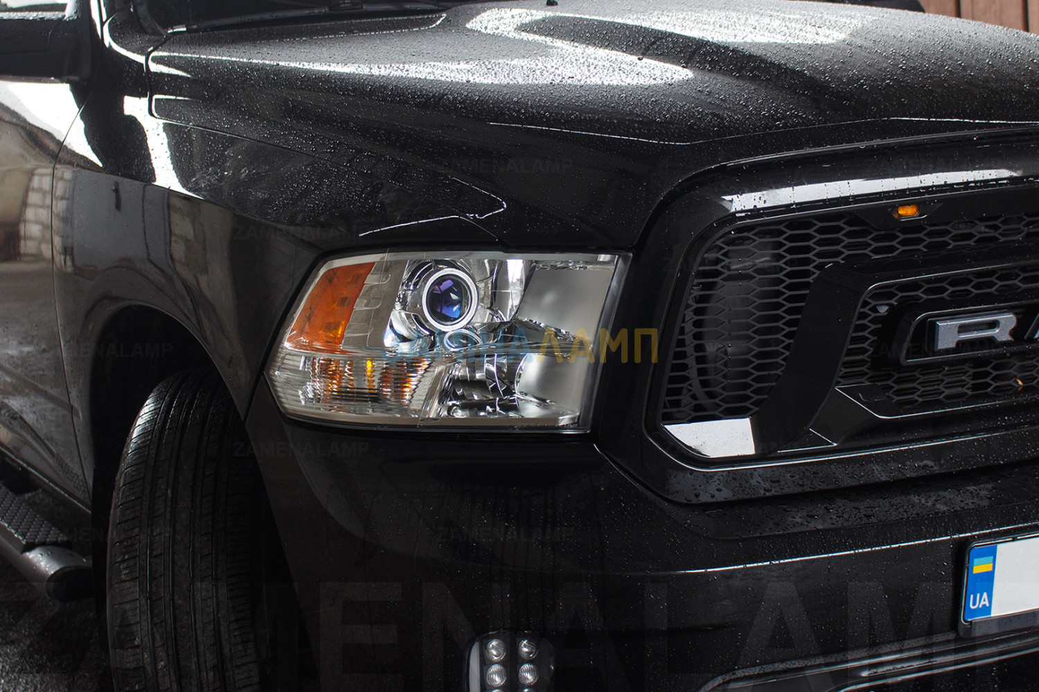 Зовнішній вигляд правої фари Dodge RAM ДО початку робіт із встановлення біксенонових лінз Hella F1.