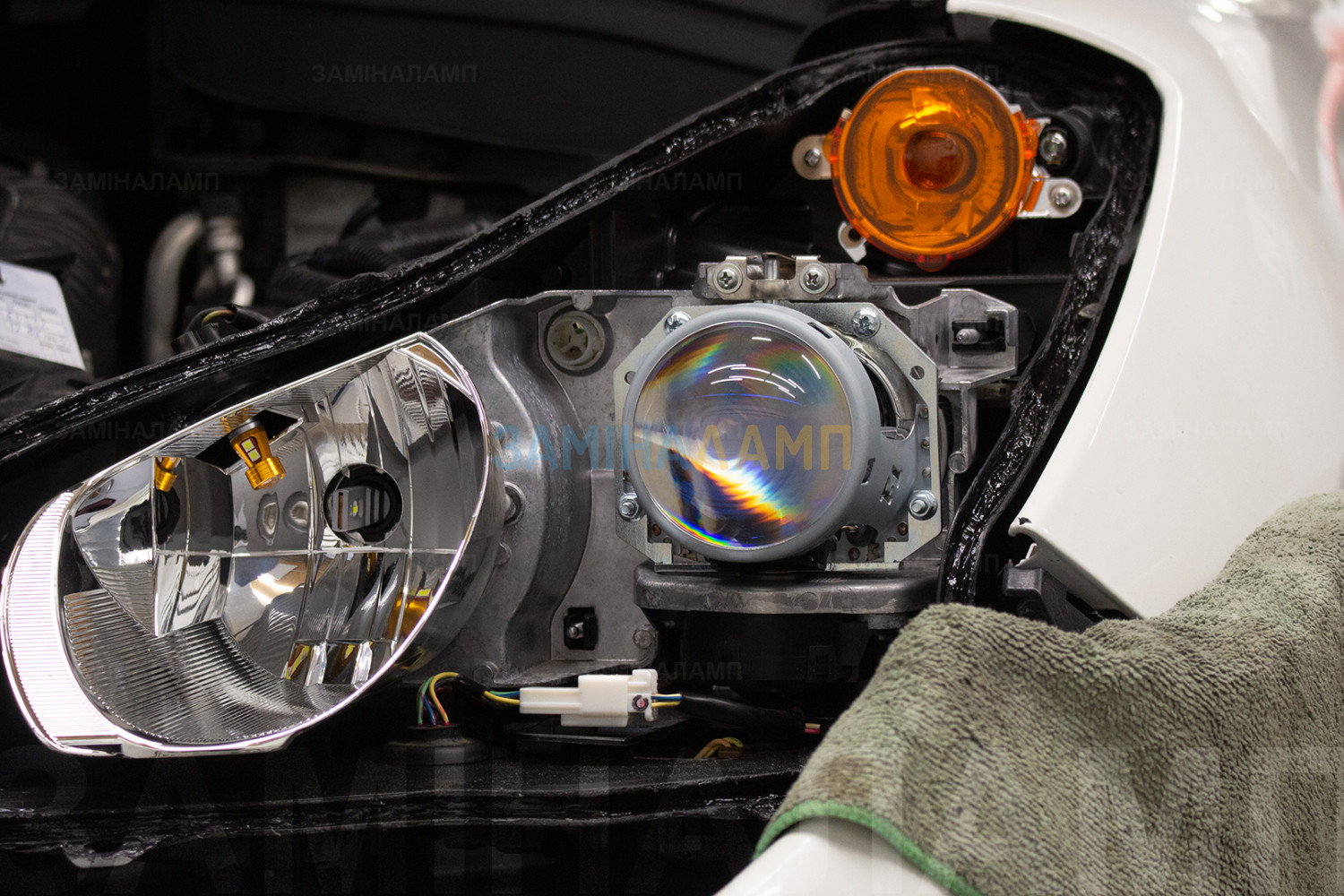 Закріпили біксенонову лінзу Hella F1 у лівій фарі.