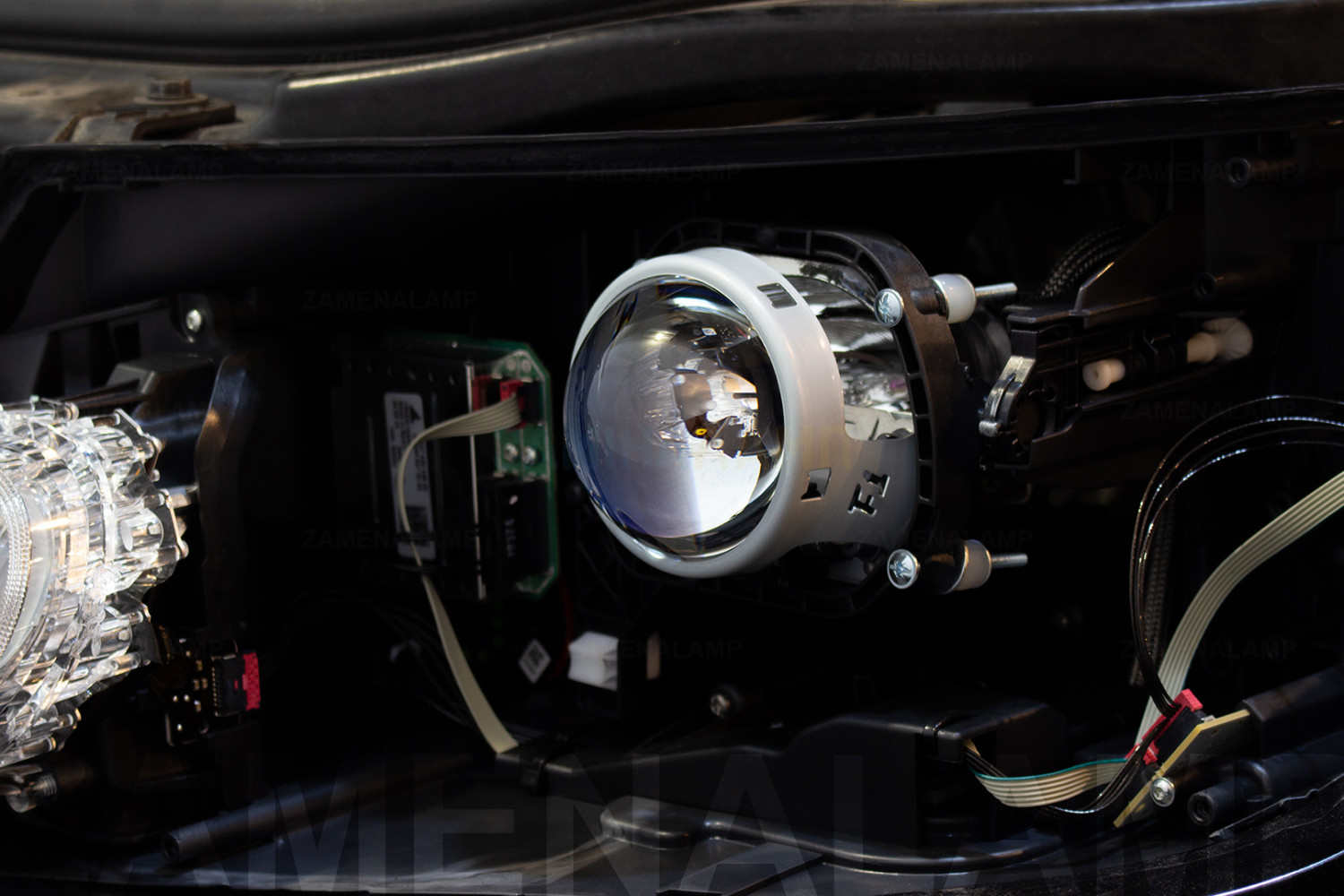 Закріпили біксенонову лінзу Hella F1 у лівій фарі.