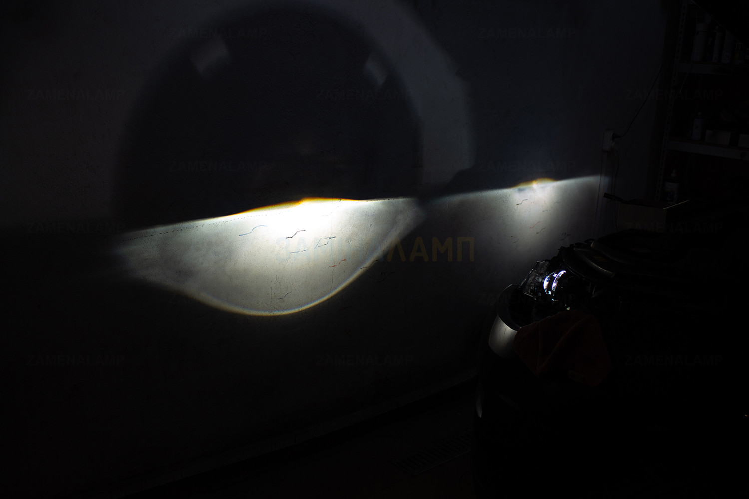 Порівняння світла фар - Праворуч штатна лінза, ліворуч ми встановили біксенонову лінзу Hella F1.