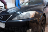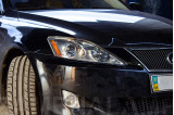 Зовнішній вигляд лівої фари Lexus IS ПІСЛЯ заміни штатних лінз на біксенонові лінзи Koito Q5 та бронювання поліуретановою плівкою.