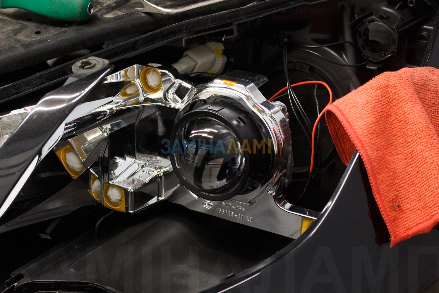 Закріпили світлодіодну лінзу Bi-Led T-Rex Pro у лівій фарі.