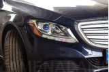 Зовнішній вигляд лівої фари Mercedes-Benz W205 ПІСЛЯ встановлення біксенонових лінз Hella 3R Mate Glass.