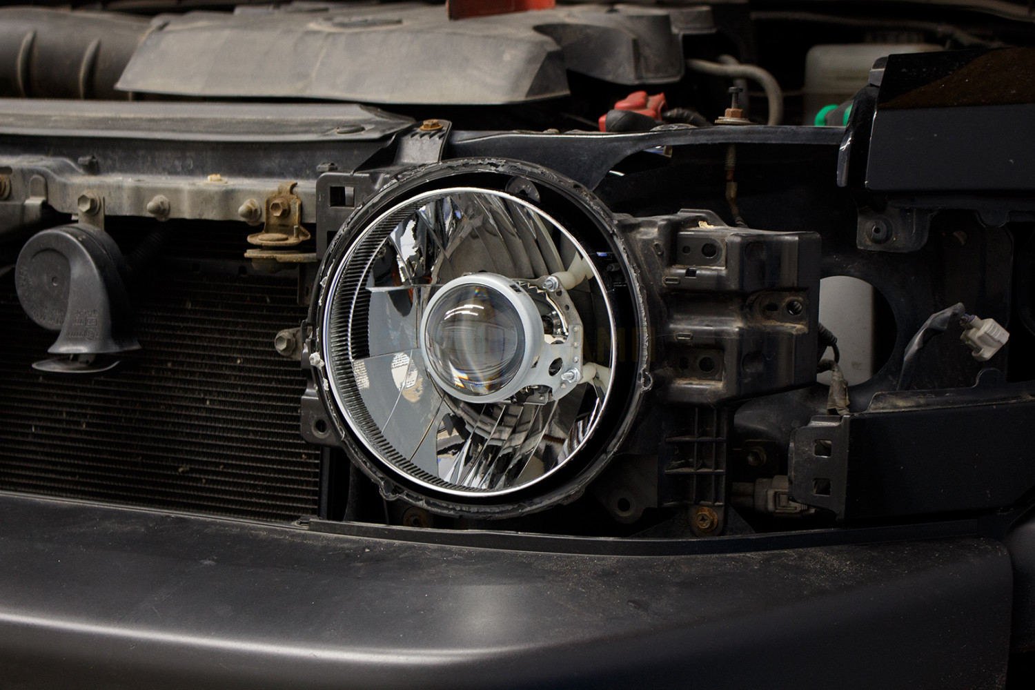 Зовнішній вигляд правої фари Toyota FJ Cruiser ДО початку робіт із встановлення біксенонових лінз Hella 5.