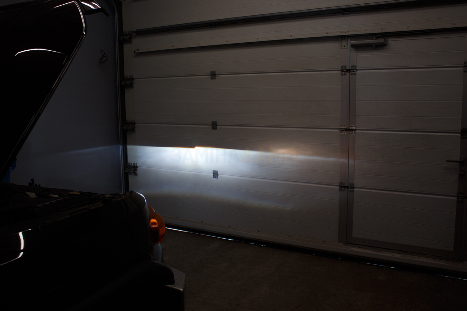 Порівняння світла фар: Праворуч штатний рефлектор з галогенною лампою, ліворуч ми встановили біксенонову лінзу Hella 5.