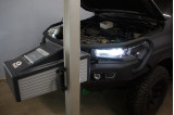 Світло фар Toyota Hilux після заміни штатних LED-лінз на світлодіодні лінзи Bi-Led T-Rex Pro 2.5" дюйми. Після встановлення фар провели перевірку світлотіньової межі та регулювання на приладі MAHA MLT 3000.
