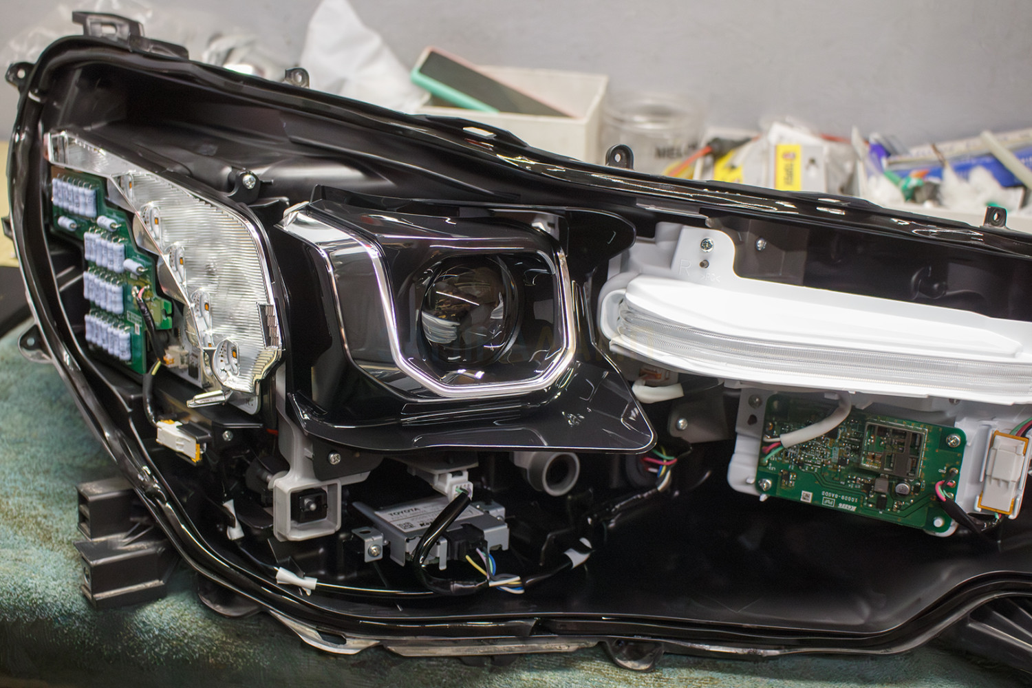 Далі приступаємо до розбирання фар і на наступному фото побачимо штатну LED лінзу.
