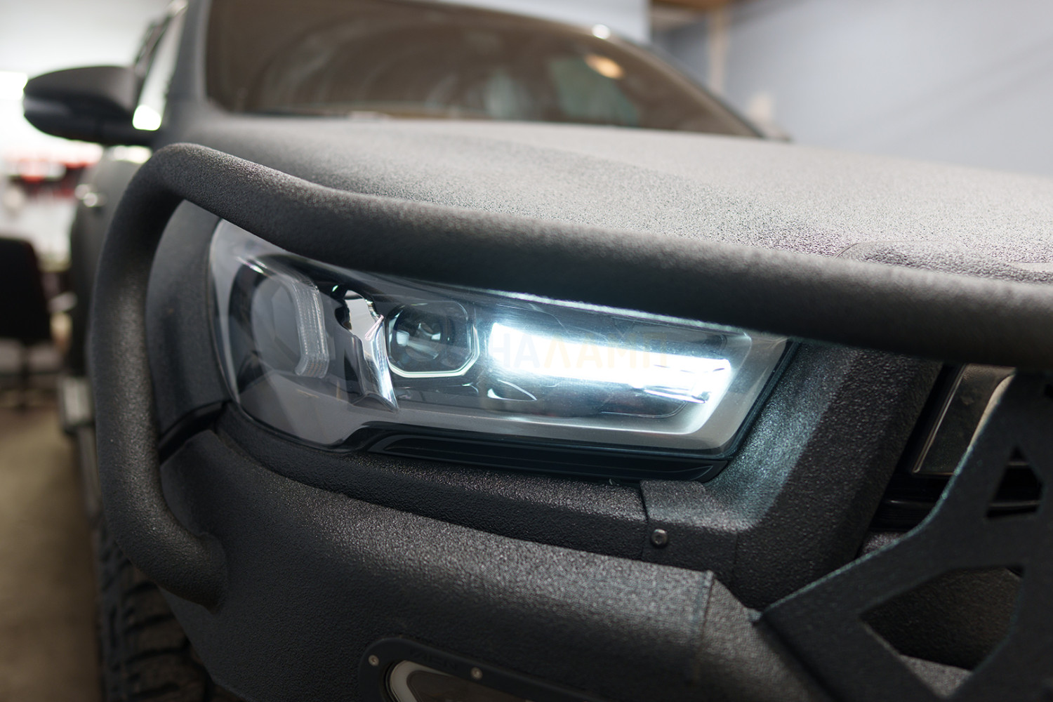 Зовнішній вигляд лівої фари Toyota Hilux до заміни штатних світлодіодних лінз на Bi-LED.
