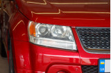 Внешний вид правой фары Suzuki Grand Vitara ПОСЛЕ замены штатных линз на Bi-LED T-REX One, шлифовки, полировки и бронирования полиуретановой плёнкой.