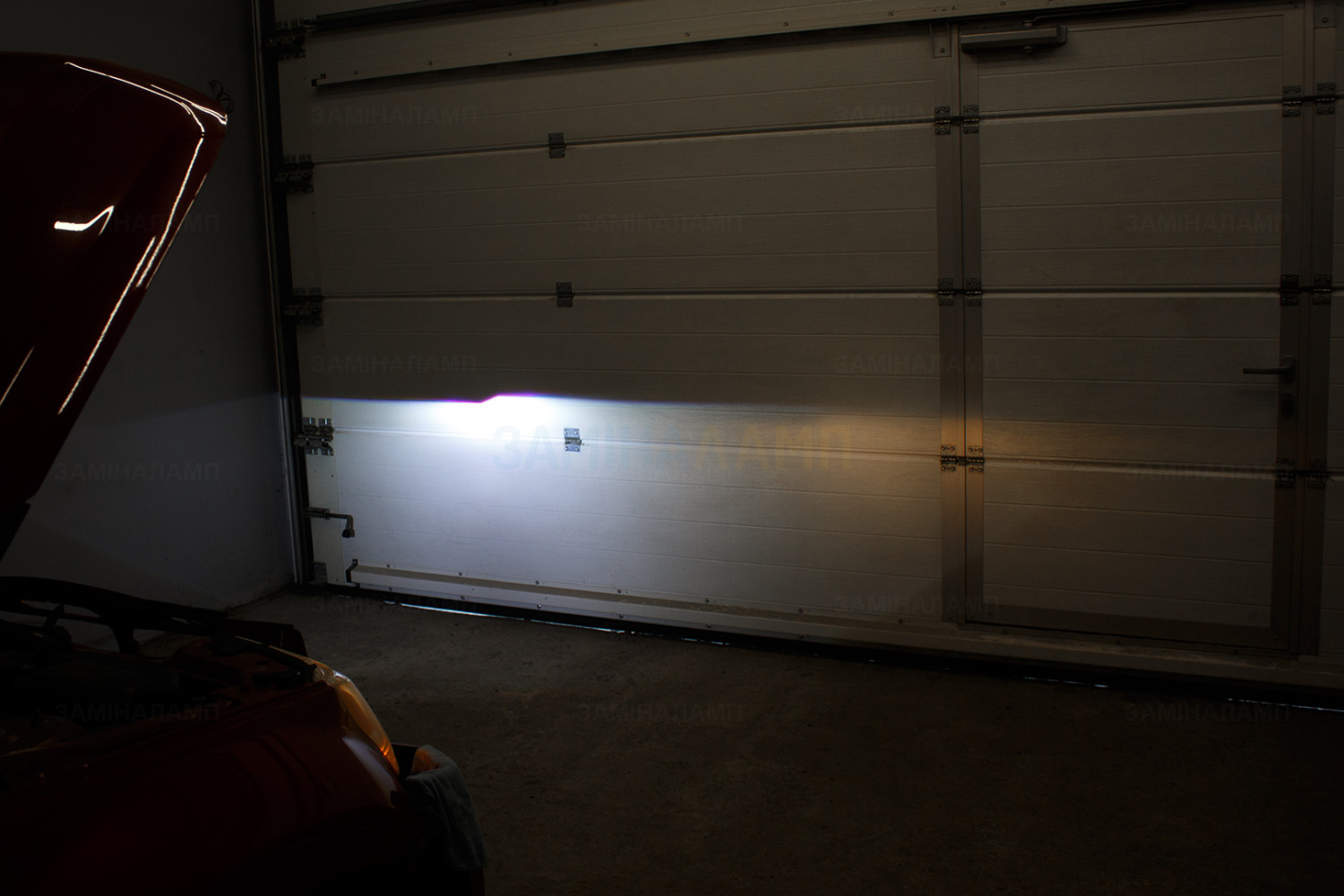 Сравнение света фар - Справа штатная галогенная линза, слева мы установили светодиодную линзу Bi-LED T-REX One.